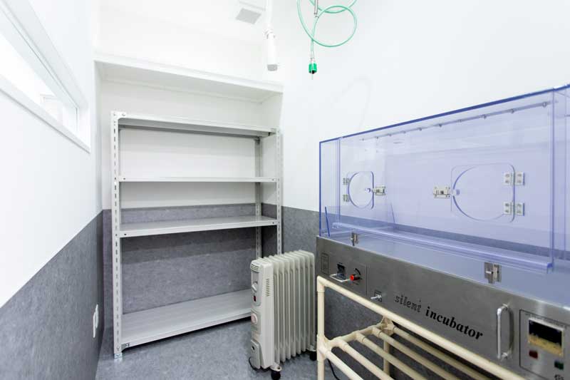 エキゾさん専用の入院室です。特にエキゾさんにとって重要な保温や調光の調節が可能な部屋となっております。