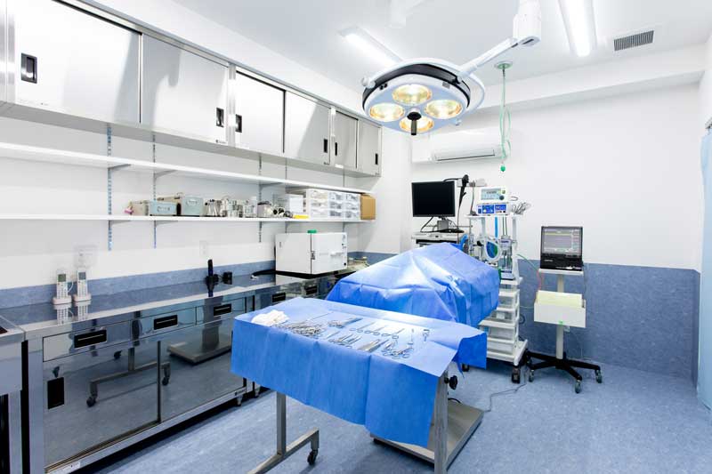 通常の手術はもちろん、内視鏡や歯科機器も揃えております。様々な手術や状況に対応できるよう、レントゲン室とも繋がっております。